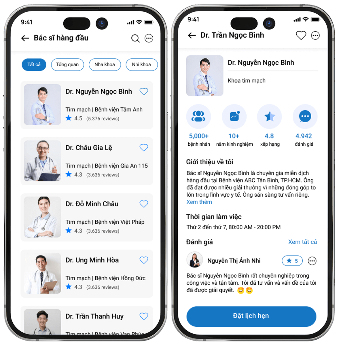 Tính năng là hệ thống của một phần mềm, mang lại khả năng sử dụng và lợi thế cạnh tranh. Khánh Nguyên Meda tích hợp bộ tính năng tốt nhất vào các giải pháp chăm sóc sức khỏe, giúp bệnh nhân và người dùng truy cập tất cả các yêu cầu y tế của họ trong một ứng dụng.