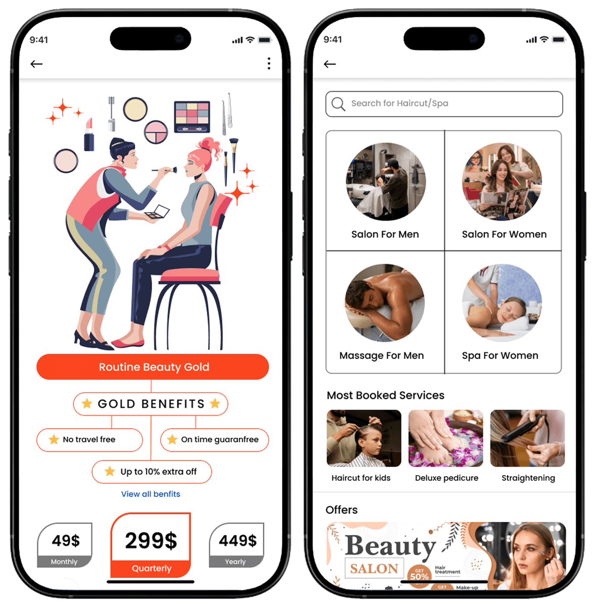Routine Beauty cho phép người dùng tìm kiếm nhà tạo mẫu, kiểu tóc, dịch vụ mát-xa và các dịch vụ làm đẹp khác phù hợp nhất dựa trên vị trí của họ. Để bắt đầu sử dụng dịch vụ, người dùng cần tạo hồ sơ. Sau đó, họ cần chọn từ danh sách các nhà cung cấp dịch vụ có sẵn.