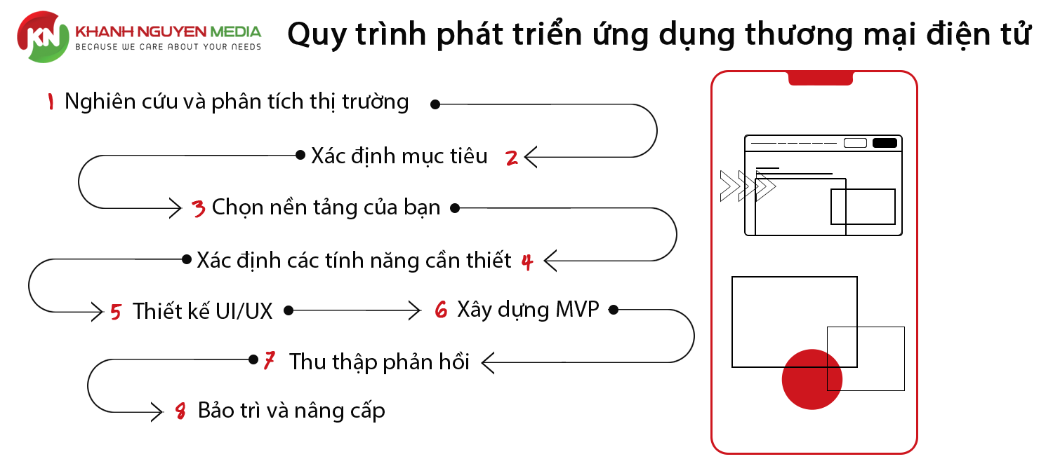 Phát triển ứng dụng thương mại điện tử là một quá trình đòi hỏi lập kế hoạch tỉ mỉ và chi tiết. Nói chung, quá trình này liên quan đến 8 bước sau: