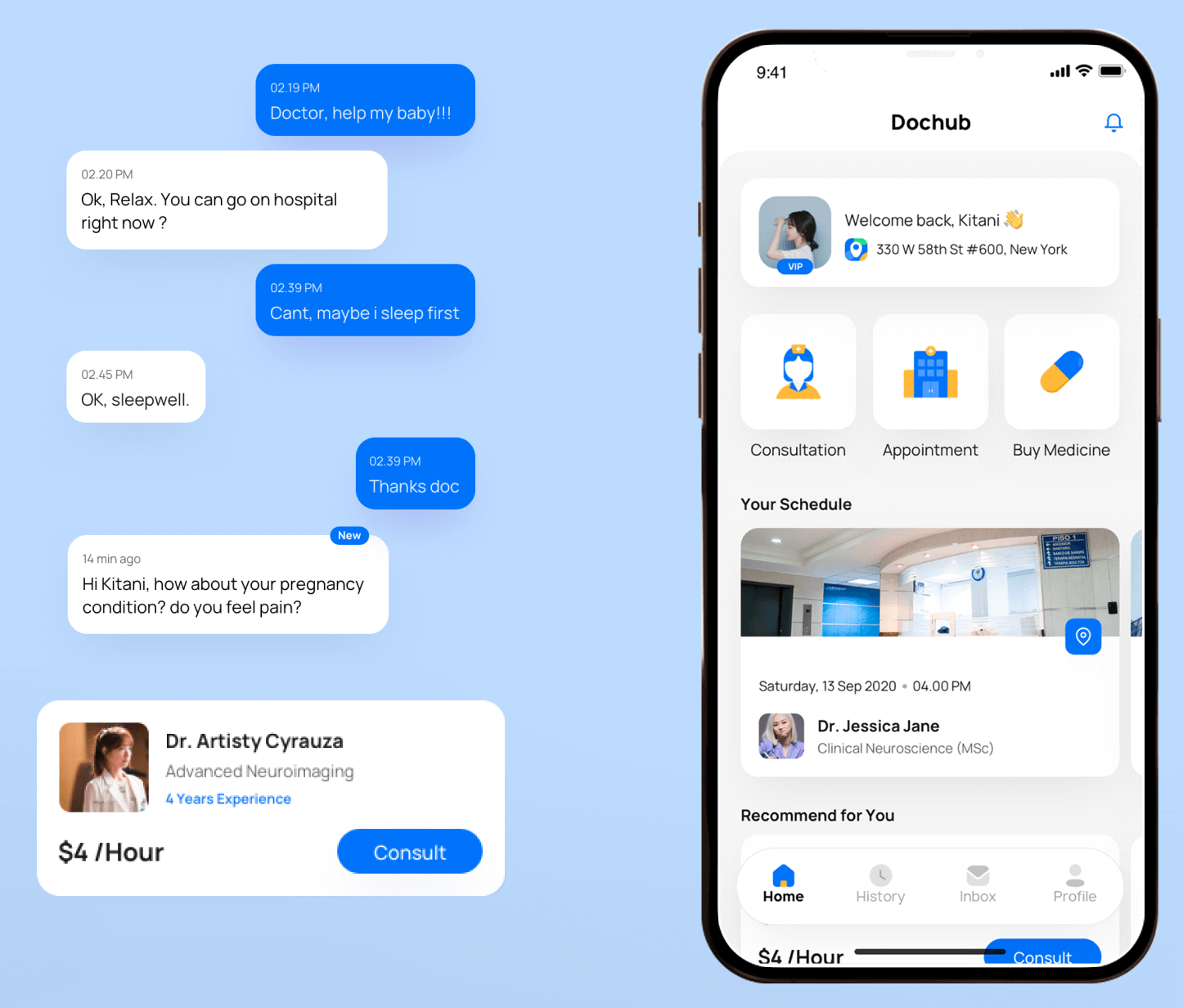 Được thiết kế hướng đến sự tiện lợi và sức khỏe của người dùng, ứng dụng này tìm cách đơn giản hóa quy trình tìm kiếm lời khuyên của dochub, lên lịch hẹn, quản lý đơn thuốc và tư vấn qua video với bác sĩ – tất cả đều nằm trong một giao diện trực quan duy nhất.