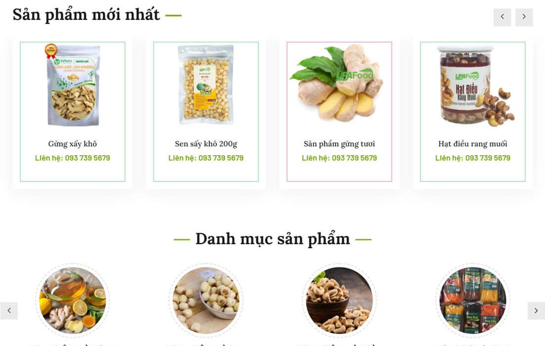 Thiết kế web bán hàng hạt Điều, Gừng và hạt Sen