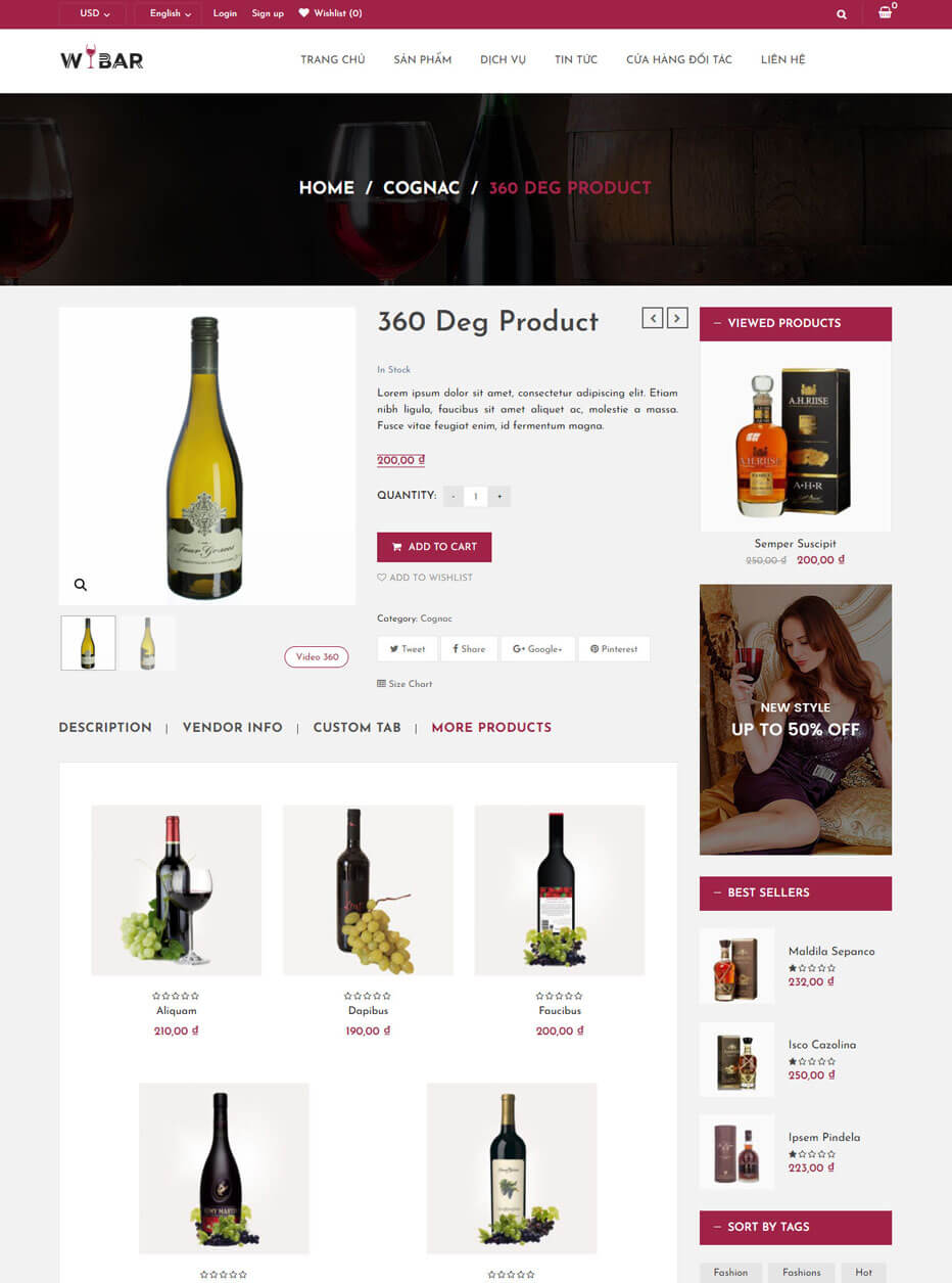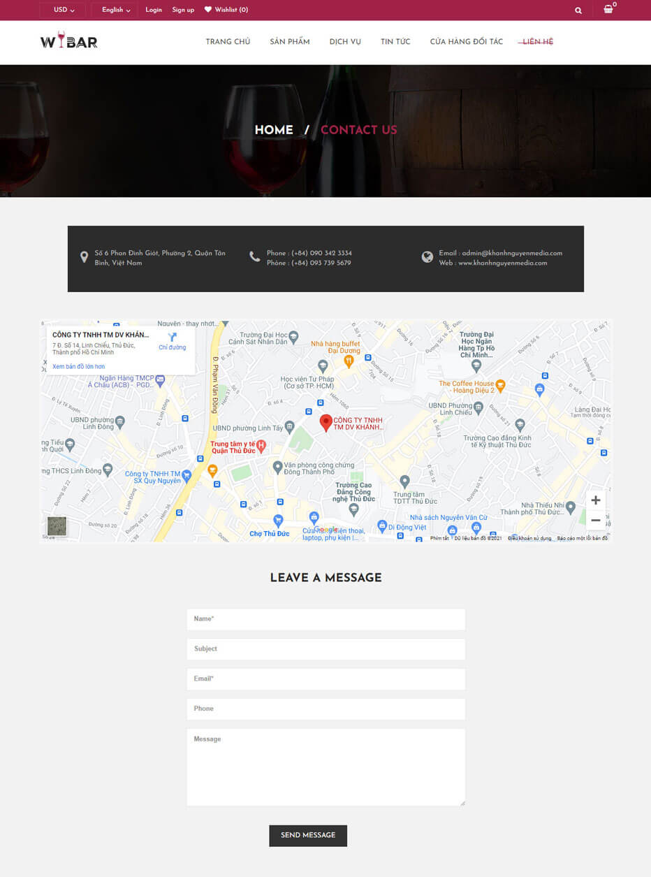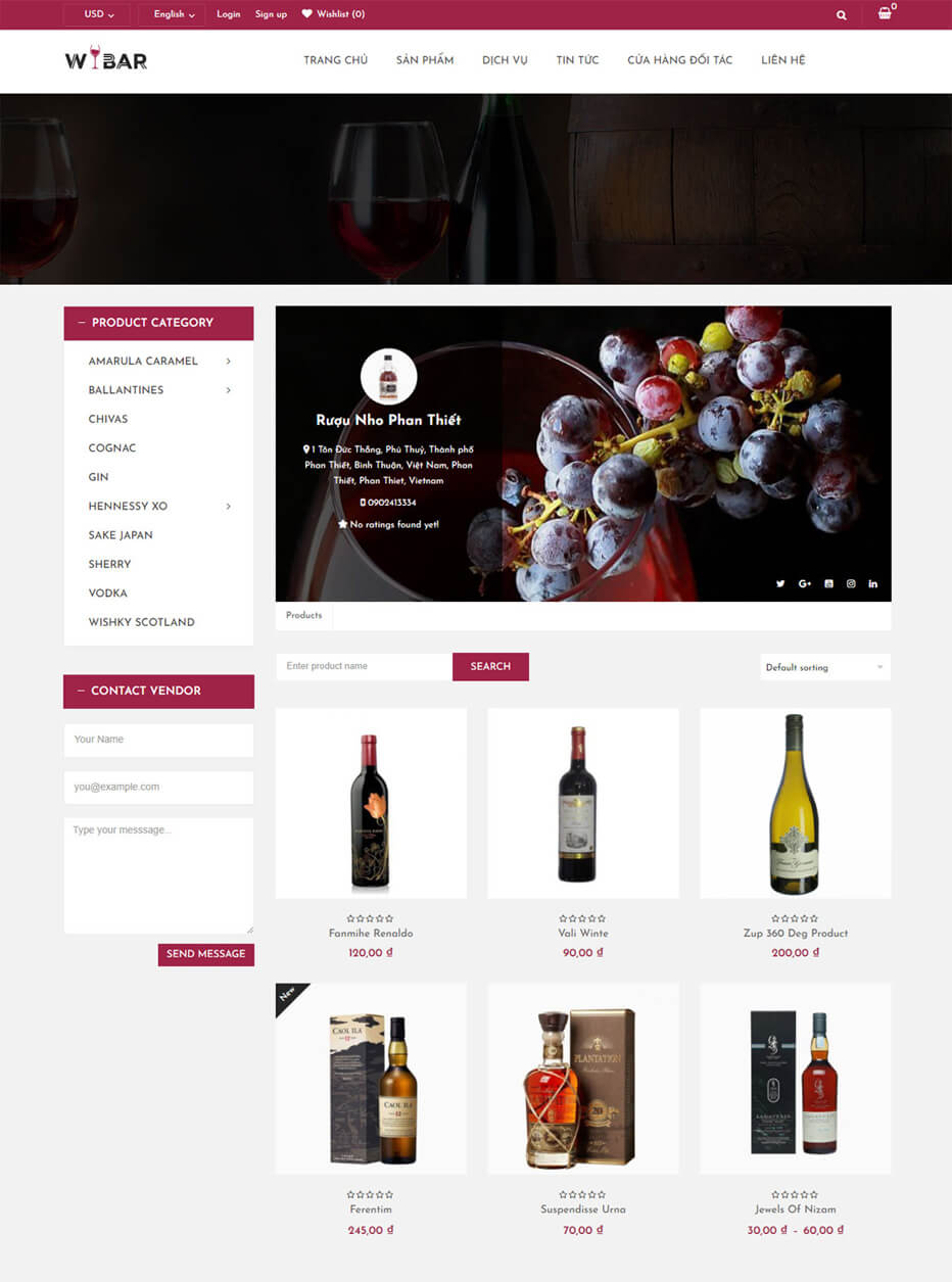 Trang web bán rượu được thiết kế tùy chỉnh có thiết kế đáp ứng giới thiệu và tổ chức các dịch vụ sản phẩm phong phú. Người dùng có thể điều hướng trang web và tìm thấy chính xác những gì họ đang tìm kiếm một cách dễ dàng. Nhiều địa điểm và bộ phận của web làm một với thiết kế gắn kết và thân thiện với người dùng. Tích hợp Live Chat cũng được thực hiện trên trang web để phục vụ thêm cho khách hàng và các nhu cầu cụ thể của họ. Cộng với tính năng tạo các liên kết đối tác tạo thành chuổi bán hàng rộng lớn.