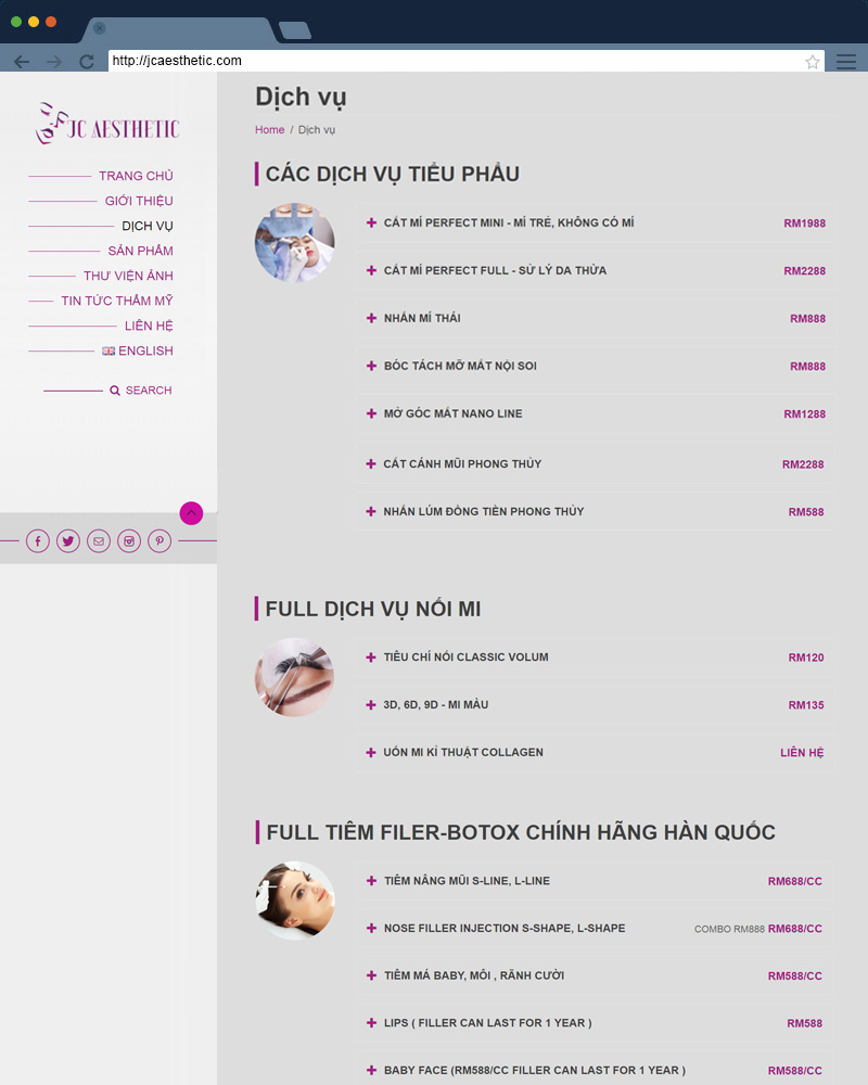 Thiết kế web JcAesthetic ở Kuala Lumpur Malaysia