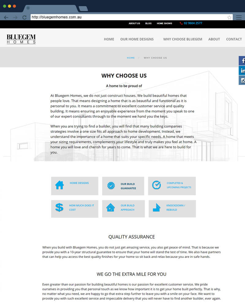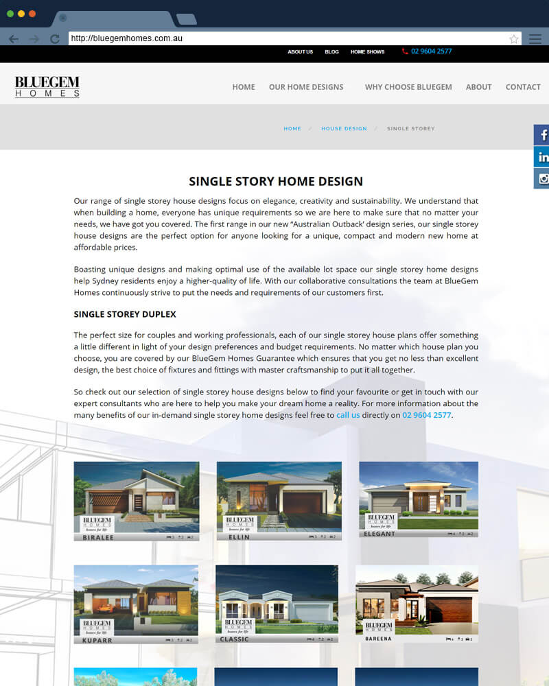 Thiết kế web kiến trúc Bluegemhomes ở Úc